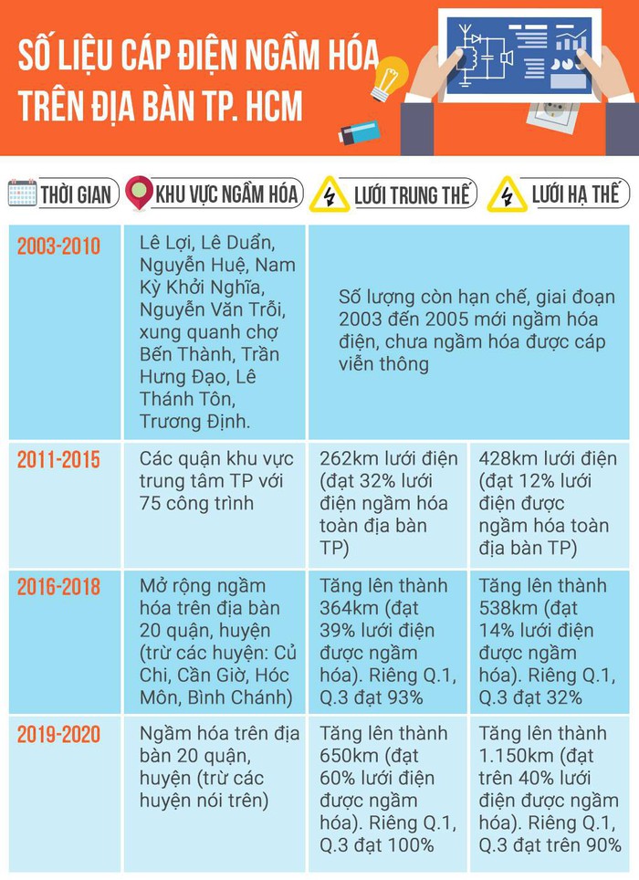 Còn toàn TP sẽ đạt tỉ lệ ngầm h khoảng 40% lưới điện trung thế, 20% lưới điện hạ thế” – ông Bảo cho biết.