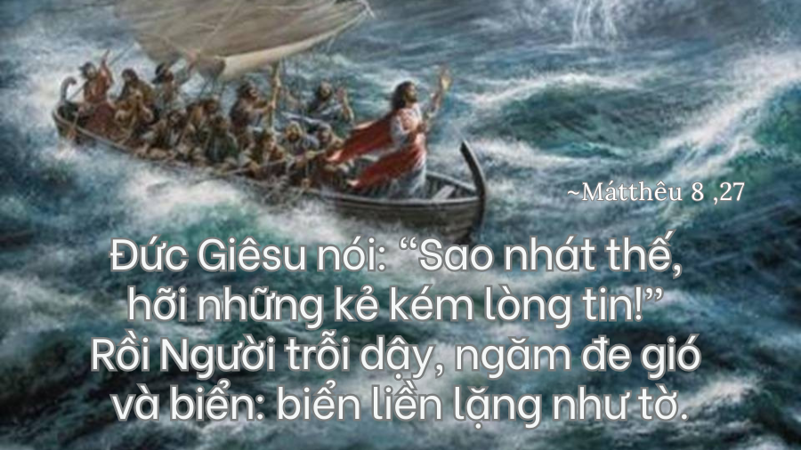 Hãy đặt mình vào hoàn cảnh các môn đệ: sóng biển đánh mạnh, nước tràn vào thuyền, những ngư dân dày dạn cũng phải kêu lên: “Thầy ơi, cứu chúng con, kẻo chết mất!” Họ không chỉ sợ sóng gió, mà sợ mình bị bỏ rơi. Chúa Giêsu ngủ, không phải vì Ngài vô tâm, mà để dạy rằng đức tin thật sự không phải là tin khi mọi sự êm ả, mà là giữ được niềm tin ngay trong lúc Thiên Chúa im lặng. Cuộc đời ta cũng có lúc cảm thấy Chúa “đang ngủ” khi ta cầu xin mà không được đáp lời, khi ta trung thành mà vẫn gặp đau khổ. Nhưng Chúa không rời xa ta. Con thuyền có Chúa ngủ thì không thể chìm được. Bình an thật không phải là không có sóng gió, mà là nhận ra sự hiện diện âm thầm nhưng chắc chắn của Ngài. Điểm sâu sắc nhất không phải là phép lạ dẹp yên sóng gió, mà là lờỉ Chúa chất vấn: “Sao các con nhát sọ?”.