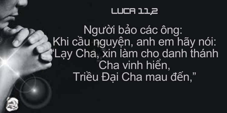 1 Một hôm, Đức Giê-su cầu nguyện ở nơi kia. Người cầu nguyện xong, thì có một người trong nhóm môn đệ nói với Người: “Thưa Thầy, xin dạy chúng con cầu nguyện, cũng như ông Gio-an đã dạy môn đệ của ông.” 2 Người bảo các ông: “Khi cầu nguyện, anh em hãy nói: