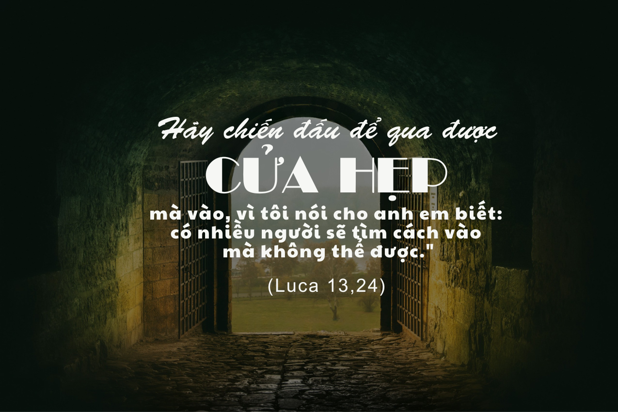 Chúng ta ai cũng muốn vào Nước Trời nhưng lại ngại phấn đấu hy sinh. Chúng ta không thể vào Nước Trời nếu mỗi người không cố gắng làm sạch con người bên trong của mình. Hai chữ cửa hẹp nhắc nhở mỗi người nỗ lực và phấn đấu rèn luyện con người của mình mỗi ngày. Tôi của hôm nay thánh thiện hơn tôi của hôm qua. Hành trình vào Nước Trời là một cuộc chiến đấu nội tâm mỗi ngày và kéo dài cho đến ngày cuối cùng của đời người. Vì thế, chúng ta hãy bám chặt vào Chúa và nỗ lực mỗi ngày chắc chắn sẽ về đến bến bình an.