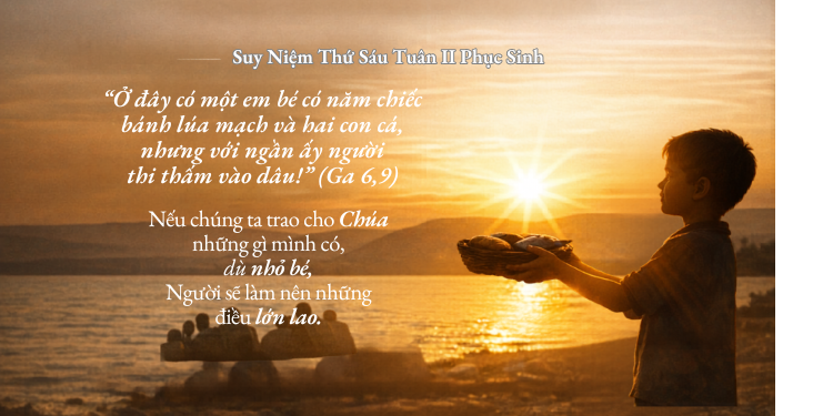 Suy niệm Thứ Sáu Tuần II Phục Sinh: Khi dâng lên Chúa những gì nhỏ bé, Người có thể biến đổi thành điều lớn lao nuôi dưỡng nhiều người. Học nơi cậu bé trong Tin Mừng sống quảng đại và tín thác.